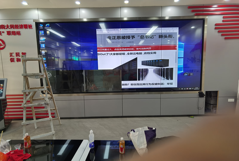 本案例中,是維康國際為廣州大崗村委提供的一套觸摸顯示屏,由3行4列、55寸液晶拼接屏,搭配紅外觸摸逛組成,如上圖所示。