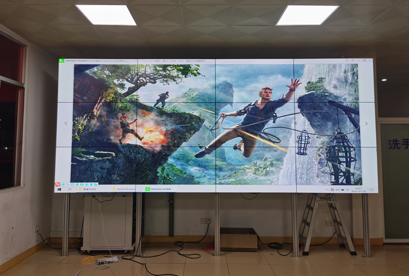 該案例中,維康國際為廣東揭陽某實業(yè)公司提供一套大屏幕顯示產(chǎn)品,主要用來會議顯示使用,由3x4拼接、55寸液晶拼接屏組成,屏體采用三星1.7mm原裝面板,如上圖所示,大屏幕畫面清晰亮麗,一體化顯示效果好。