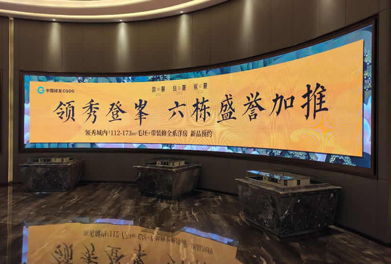本案例中,維康國(guó)際為中國(guó)綠發(fā)CGDG的展廳提供一套顯示大屏,由P1.667軟模組LED顯示屏組成,如上圖所示,大屏幕與墻面設(shè)計(jì)成一體,畫(huà)面顯示清晰、一體化顯示效果好。