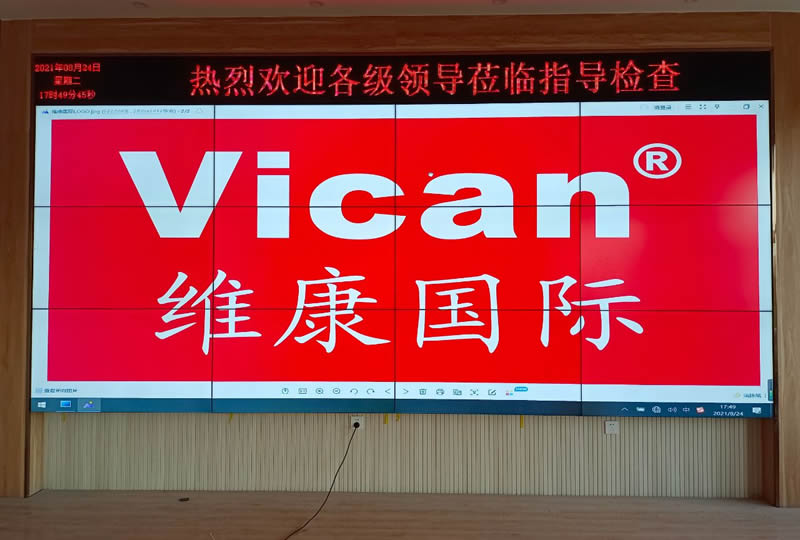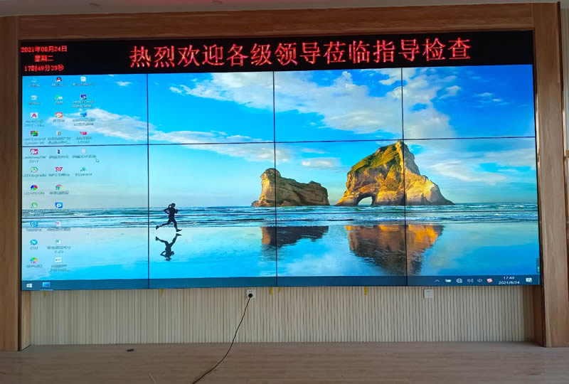 本案例中,維康國際為廣東清遠(yuǎn)某中學(xué)提供一套高清會議大屏,采用3X4的55寸液晶拼接屏,拼縫為3.5mm,大屏幕美觀大氣、顯示效果好。