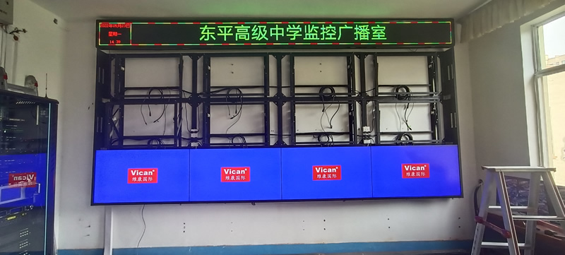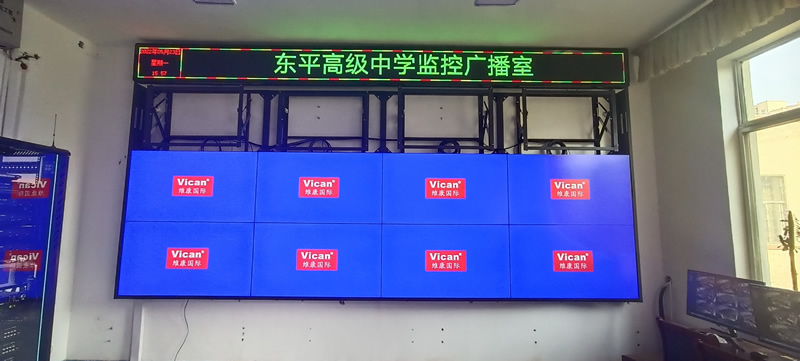 本案例中,維康國際為東平市高級中學的監(jiān)控廣播室提供一套顯示大屏,采用3行4列、55寸液晶拼接屏,主要用來 顯示監(jiān)控畫面,如上圖所示。
