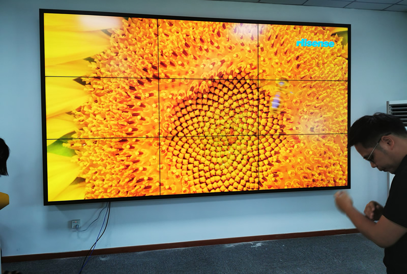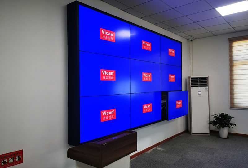 本案例中,維康國際為深圳市航天泛在科技園提供一套會議廳拼接屏,3.5mm拼縫的原裝面板,采用3*3拼接、前維護(hù)支架安裝加包邊處理,畫面顯示效果好,色彩鮮艷。
