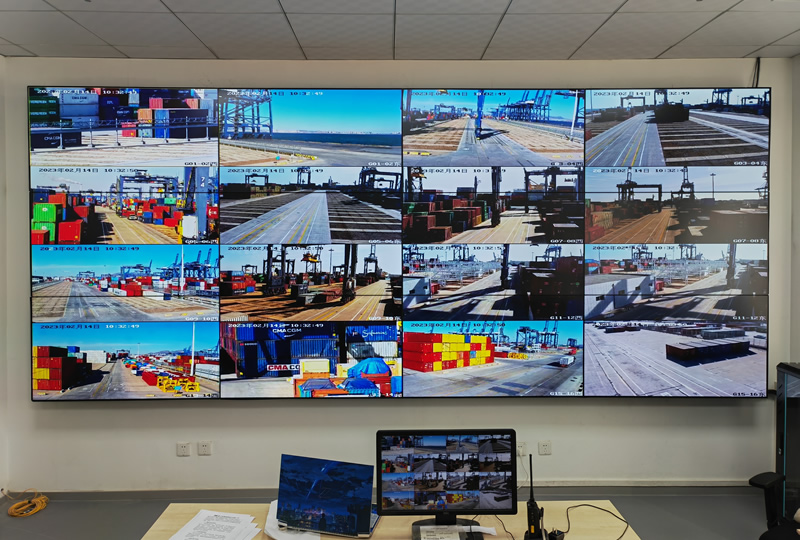 本案例中,維康國(guó)際為大連碼頭集裝箱公司提供一套監(jiān)控大屏,采用3行4列,55寸液晶拼接屏,1.7mm工業(yè)級(jí)液晶面板,大屏幕顯示清晰,性能穩(wěn)定。