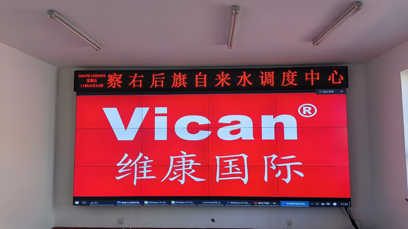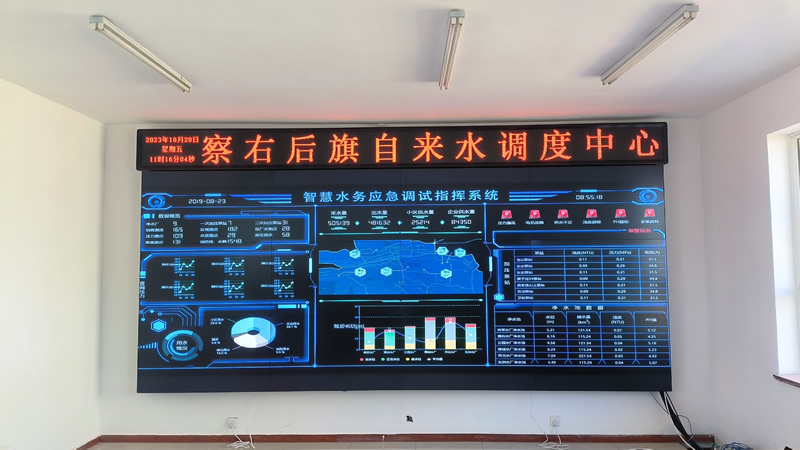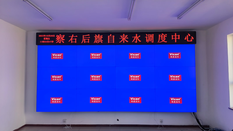 本案例中,維康國際為內蒙古某自來水公司提供一套指揮調度中心大屏,由3x4拼接、55寸液晶拼接屏組成,采用0.88mm超窄邊LG面板,顯示清晰,色彩豐富,一體化顯示效果更好。