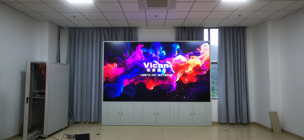 該項(xiàng)目中,維康國(guó)際為深圳市某企業(yè)提供了5套高清液晶大屏,采用0.88mm拼縫的高清晰液晶拼接屏,3x3拼接方式,高清畫質(zhì),超小拼縫,大屏幕畫面一體化顯示效果很好。