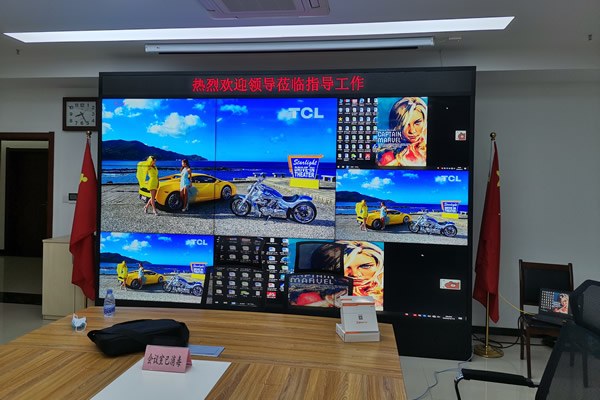 廣州某稅務(wù)局采用的這套會議室大屏由3x3、55寸3.5mm液晶拼接屏組成,畫面清晰亮麗,支持單屏、多屏、跨屏等多樣化拼接顯示,具體如上圖所示。