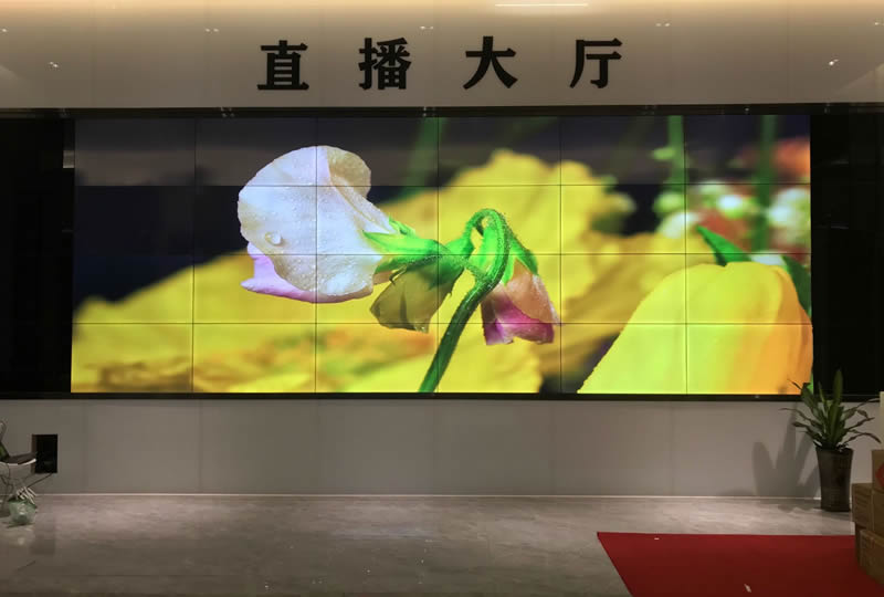 上圖的案例,是我公司為佛山市其邦家居科技有限公司直播大廳安裝的一套大屏顯示系統(tǒng),采用4x6、55寸液晶拼接屏,大屏畫面清晰亮麗,有著非常好的顯示效果。