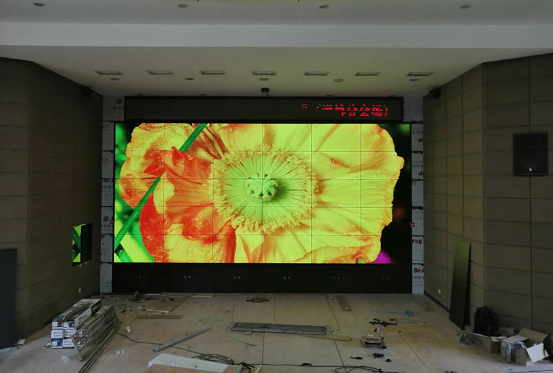這套5x6會(huì)議大屏安裝在淄博某水利局,采用55寸液晶拼接屏,雙邊拼縫為3.5mm,主要用來做信息數(shù)據(jù)顯示。大屏畫面總長度約:7.28米,高度約:3.42米。
