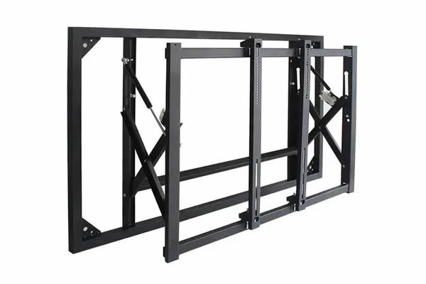 這是目前比較流行的一種支架,它也是壁掛式的一種,把液壓前維護(hù)支架固定在墻上,然后再把拼接屏掛上去,與壁掛支架一樣,需要考慮墻體的承重力與安全性。液壓前維護(hù)支架的優(yōu)勢(shì)在于維護(hù)的便捷性,只需要輕輕一按,拼接屏就會(huì)彈出來(lái)。很多客戶是采用內(nèi)嵌式來(lái)安裝,這樣更美觀大氣。