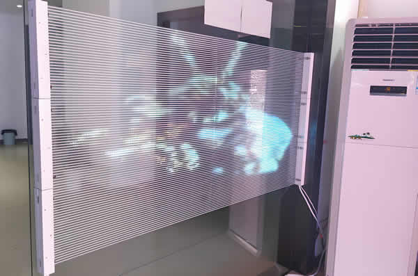 這是一款普通的透明屏,用的也比較多,它的優(yōu)點(diǎn)是價(jià)格便宜,不過它的顯示效果一般,在戶外與室內(nèi)場合都可以使用,可以裝在商場櫥窗玻璃的后面,也可以安裝在戶外幕墻上,通過拼接成一個(gè)超大屏幕顯示。
