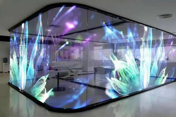 與LED透明屏完全不同,它是采用光學(xué)數(shù)字顯示技術(shù),對透明介質(zhì)材料進(jìn)行多層結(jié)構(gòu)調(diào)整,只會對激光光源方向的光進(jìn)行調(diào)控,對其他方向的光允許完全透過。從而實(shí)現(xiàn)全透明、高清晰的圖像顯示。當(dāng)然了,雖然透明顯示效果很好,但它的價(jià)格是比較貴的。