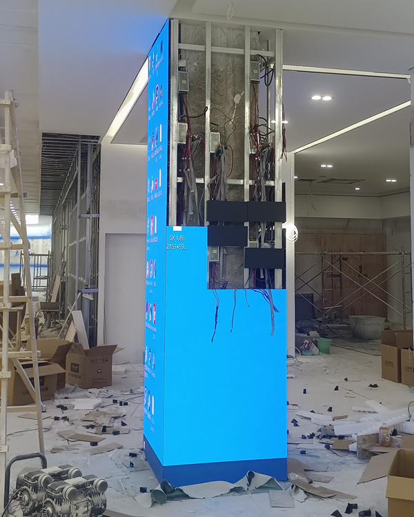 根據(jù)設(shè)計規(guī)劃,首先搭建圓柱型LED顯示屏的安裝支架結(jié)構(gòu)。支架需穩(wěn)固可靠,能夠完全承受顯示屏的重量。