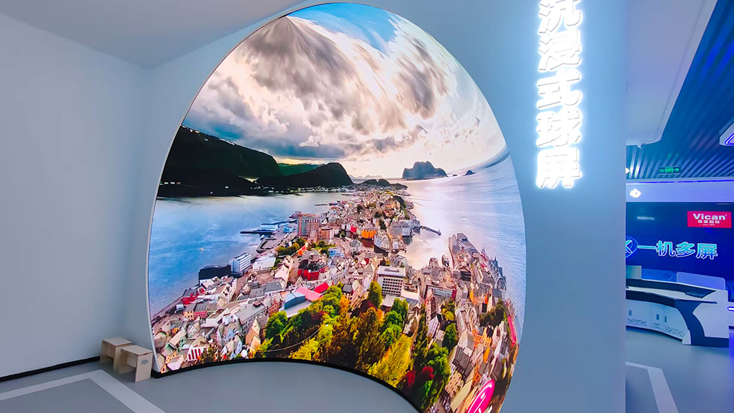 LED 顯示屏通過無縫拼接技術(shù),實(shí)現(xiàn)超大尺寸的顯示畫面,消除了拼接縫隙對視覺的干擾。打造出近乎180°視野范圍的沉浸式顯示效果,讓觀眾完全被畫面所包圍。